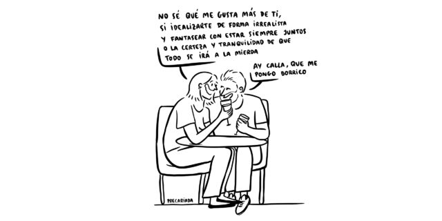 Buscas hablar de lo precaria que, en general, es la vida de los jóvenes, pero ¿hay algún tema por el que te decantes? No, siempre he hablado un poco de todo, porque la precariedad nos afecta en cualquier ámbito: el laboral, el sentimental, el mental… Me gusta hablar de esos temas porque, tristemente, todos nos sentimos identificados con ellos. Quiero que quien vea las viñetas piense “Joder, yo también he pasado por eso”; las mierdas compartidas son menos mierdas. Intento que la gente se vea representada. Si alguien ha tenido un día horrible y una de mis ilustraciones le saca una sonrisa, yo me doy por satisfecha.
