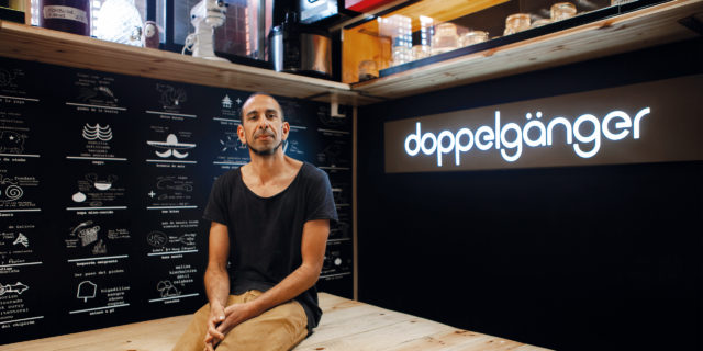 En su vida caben muchas vidas. Los 22 años dedicado a la cocina le han llevado a China, San Sebastián o a Londres. Ha regentado un restaurante con estrella Michelin, pero también se ha cansado y ha renunciado a ella porque necesitaba la cercanía con el comensal. El resultado de todos estos viajes y riesgos es Doppelgänger, un restaurante heterodoxo, con espacio para 25 personas por turno, donde puede hablar con su característico ‘ejque’ y dejarse la piel a gusto. Foto: Lucía Zapata para El Duende